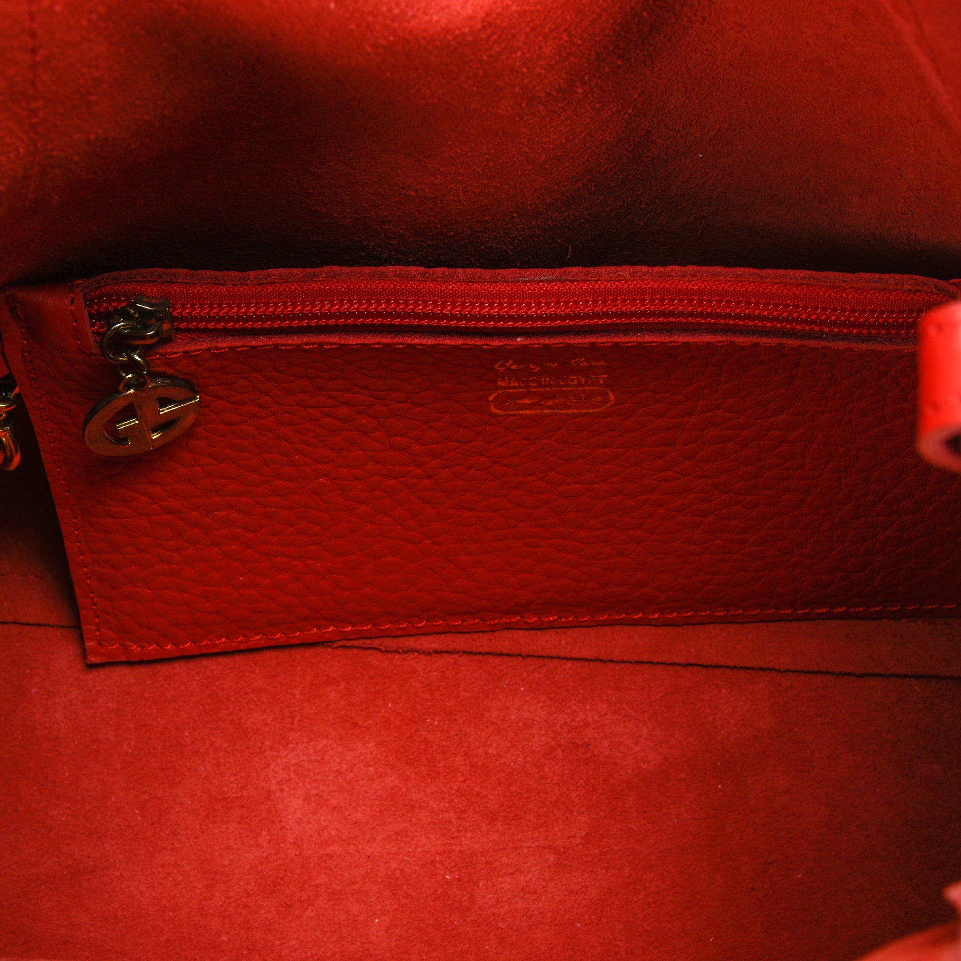 Leather-trimmed internal pocket